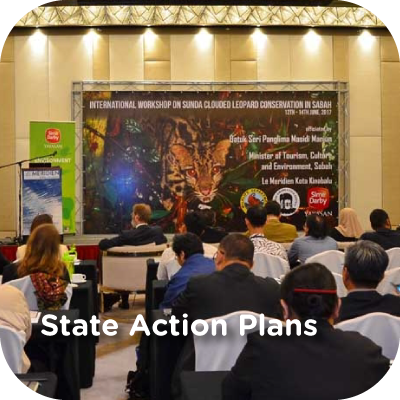 In 2017, DGFC and the SWD organised three international closed-door meetings and workshops with the final goal of obtaining action plans for the proboscis monkey, the Sunda clouded leopard and the Bornean banteng. Population and Habitat Viability Analyses (PHVA) were performed for the proboscis monkey and the Bornean banteng by a panel of experts and government officers. The results of the PHVA were presented to the stakeholders during the international workshops. The workshops consisted in quality presentations, discussions in ad-hoc working groups, and a general discussion to incorporate relevant information into the action plans. The ten-year action plans have been drafted by DGFC’s director, reviewed by the experts, and are to be presented for final discussion and approval in September 2018. The final versions will be available in this website.